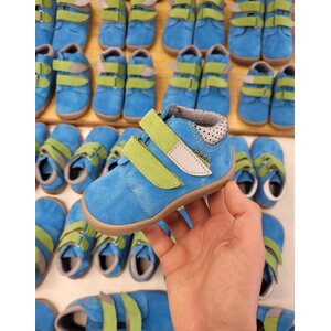 Zapatos descalzos de niños para los días frescos y húmedos. Los zapatos tienen una membrana repelente al agua, pero no son impermeables como las botas de agua.